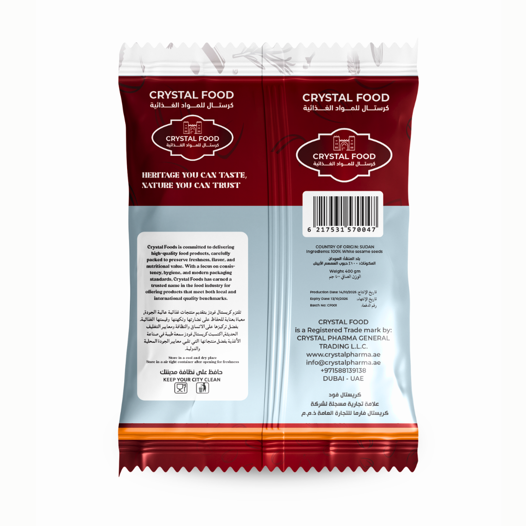 Enhance your meals with the natural richness of Crystal Food White Sesame Seeds, carefully selected to deliver quality, flavor, and freshness in every pack.